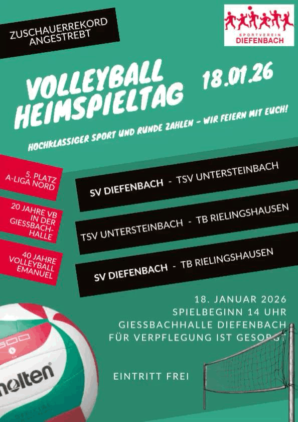 Die Anmeldung erfolgt wieder ausschließlich online über folgenden Link: http://sv-diefenbach.de/kinderturnen2025 und muss für jedes Kind separat ausgefüllt werden. Der Anmeldzeitraum ist vom 25.07.2025– 31.07.2025. Erst nach Ablauf der Anmeldefrist bekommt jeder eine E-Mail, ob sein Kind ab dem 25.09.2025 am Kinderturnen teilnehmen kann.