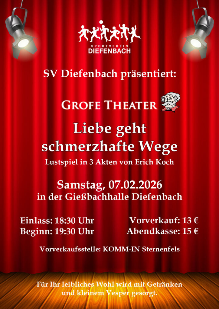 Wir freuen uns wieder das Grofe Theater Bauschlott e.V. in der Diefenbacher Gießbachhalle begrüßen zu dürfen.